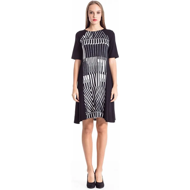 Gedessineerde zakjurk in zwart