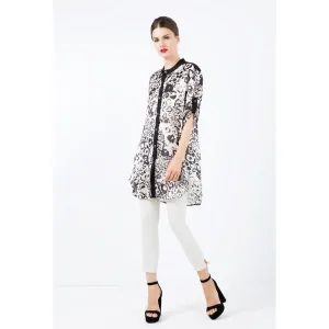 Zwarte top met netjacquardmouwen in duurzame stretchjerseystof