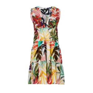 Blauwe jurk met bloemenprint en zijsplitten