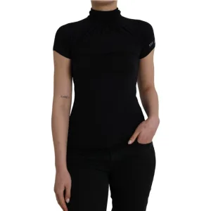 Costume National Zwarte Coltrui Viscose Korte Mouw Top