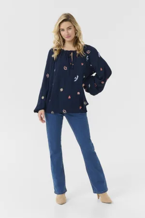 Blouse met lange mouwen Loose fit Dress blue with mulitcolor emb blue