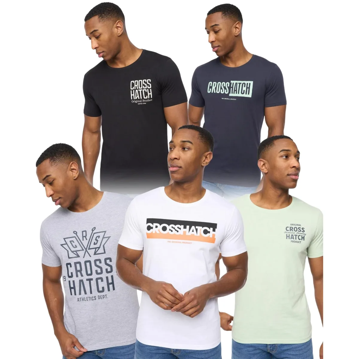 Crosshatch Heren Logotime T-Shirt (Verpakking van 5) (Zwart/Mint/Marineblauw/Wit/Grey Marl)