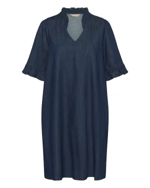 CULTURE Jurk ”Ayna’ blauw denim / wit