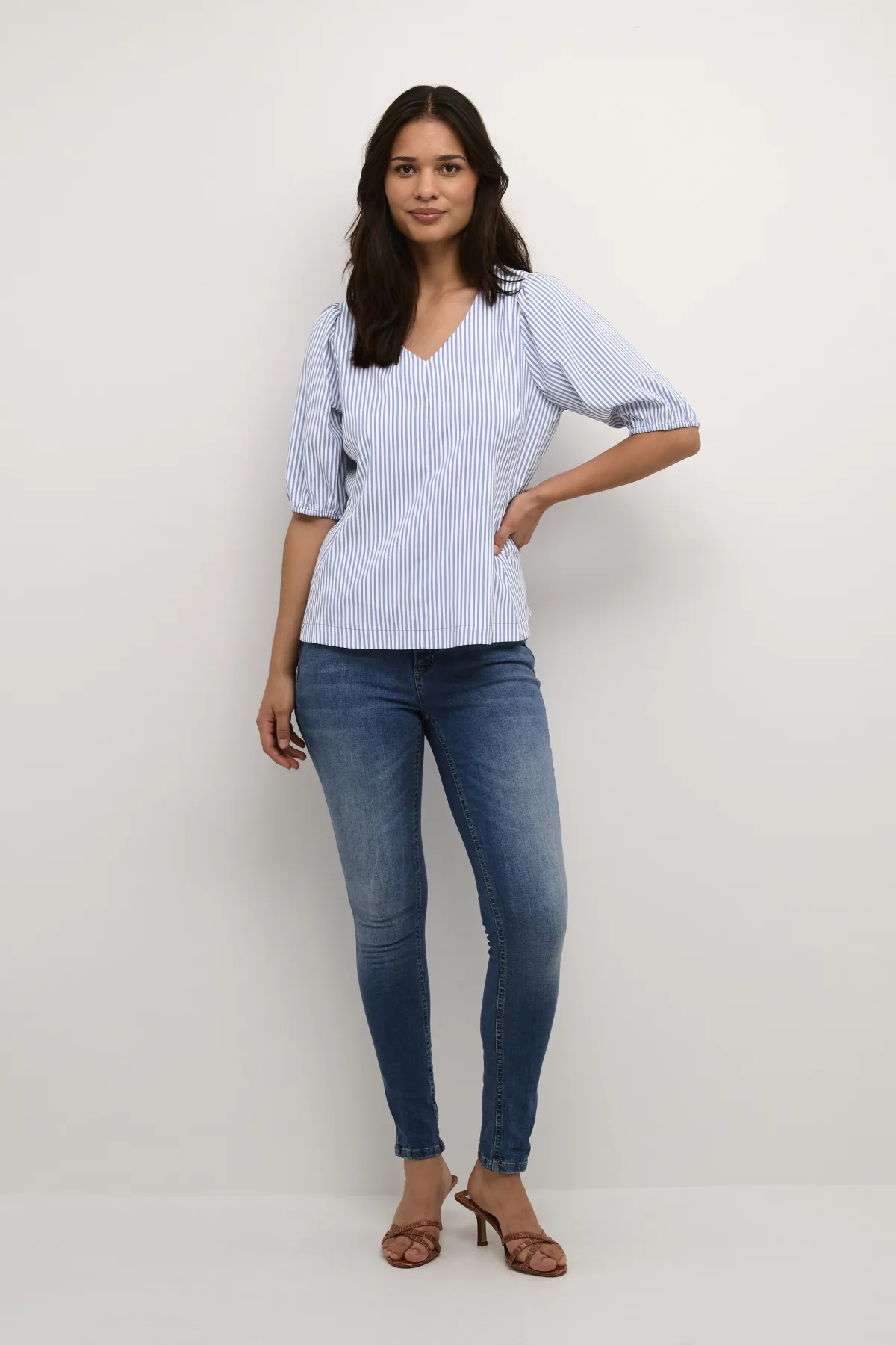 Blouse met korte mouwen Casual fit Mazarine Blue white