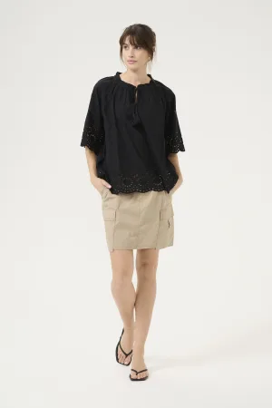 Blouse met korte mouwen Relaxed fit Blac