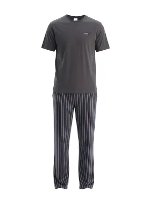 Dagi Pyjama lang lichtgrijs / bordeaux / zwart