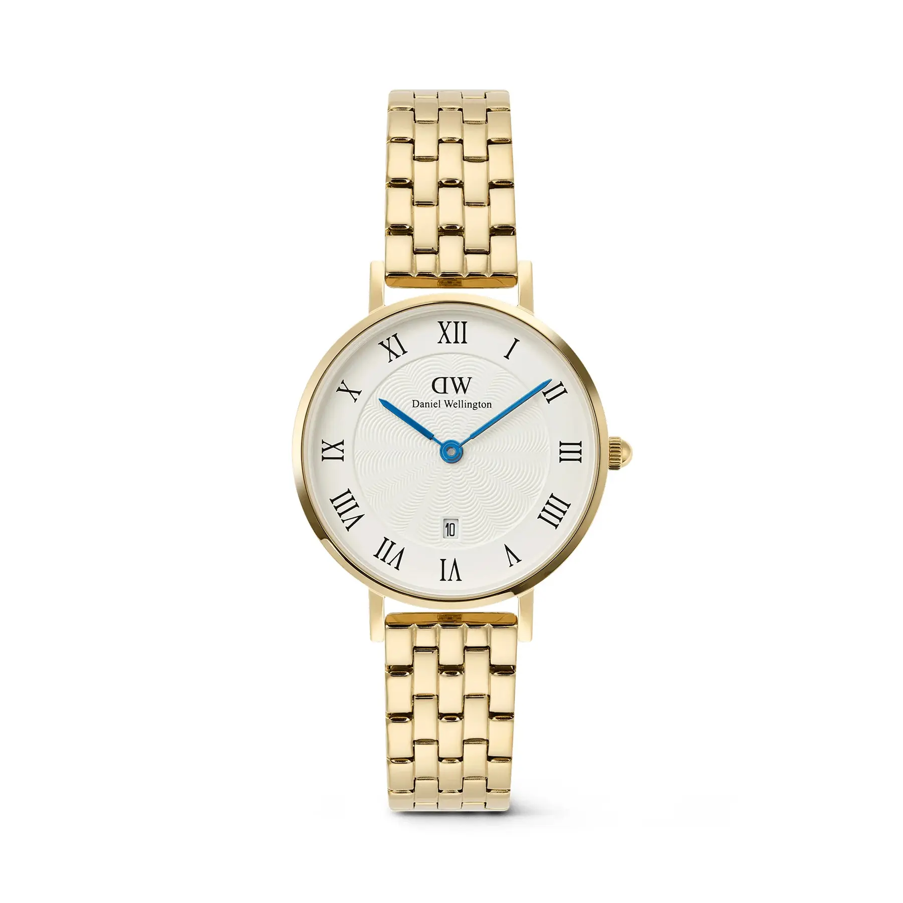 Vrouwenhorloge Daniel Wellington Petite 28 Roman Numerals Date 5-Link YG