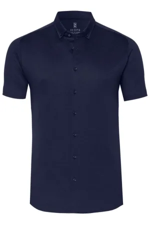 Desoto Slim Fit Jersey shirt Marine, Effen