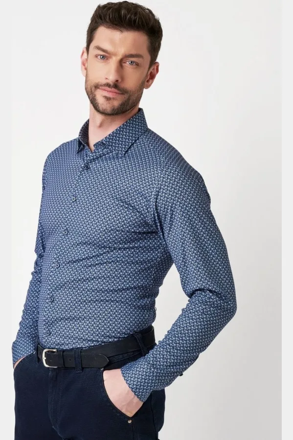 Desoto Overhemd Timeless Elegance Bloem Blauw