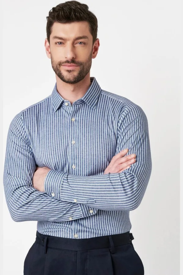 Desoto Modern Fit Overhemd donkerblauw, Gestreept