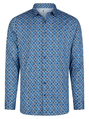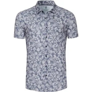 Desoto Short Sleeve Jersey Overhemd Print Lichtblauw