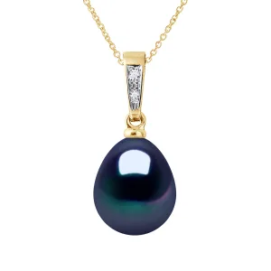 Diamond Pendant 0.010 Cts Gekweekte Pearl Freshwater peer 9-10mm Black Yellow Gold