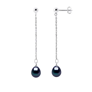 Bengelen oorbellen Gekweekte parels Zoetwater 7-8mm White Gold Black