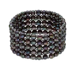 Manchet armband 5 Rijen Black Pearl Zoetwater 925