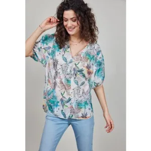 DIDI Blouse S/s Flare In Feather Grey With Ocean Treasure