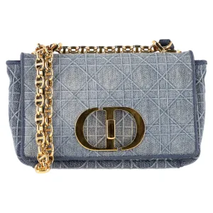 Dior Kleine Caro Clutch Schoudertas in Blauwe Katoenen Denim