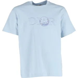 Dior Hylton Nel SS25 T-shirt met logo-opdruk in lichtblauw katoen