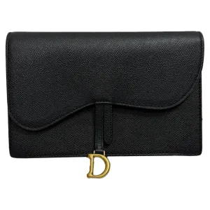 Dior middelgrote zadeltas met ketting in zwart geitenleer