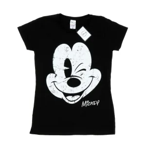 Disney Dames/Dames Mickey Mouse Distressed Gezicht Katoenen T-Shirt (Zwart)