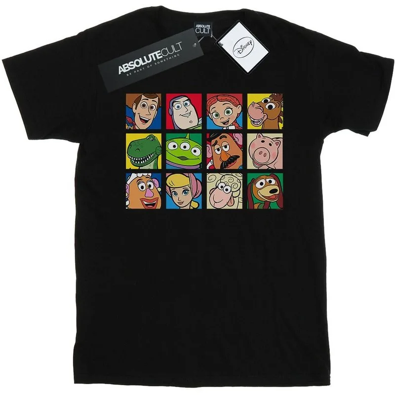 Disney Dames/Dames Toy Story Karakter Squares Katoenen Vriendje T-shirt (Zwart)
