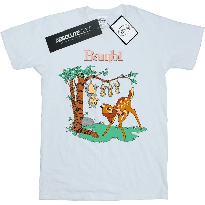 Disney Dames/Dames Bambi Omhoog Gekanteld Katoenen Vriendje T-shirt (Wit)