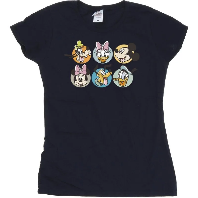 Disney Dames/Dames Mickey Mouse And Friends Gezichten Katoenen T-Shirt (Marineblauw)