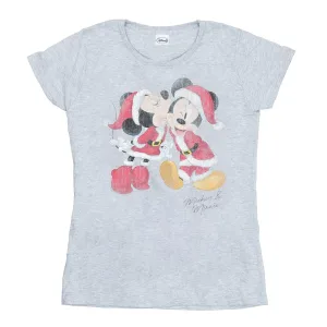 Disney Dames/Dames Mickey en Minnie Kerstkus Katoenen T-Shirt (Sportgrijs)