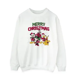 Disney Heren Mickey Mouse Vrolijk Kerstfeest Figuren Sweatshirt (Wit)