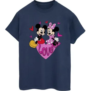 Disney Dames/Dames Love Heart Mickey & Minnie Mouse Katoenen Vriendje T-shirt (Marineblauw)