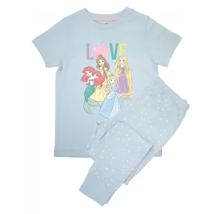 Disney Meisjes Love Princess AOP Lange Pyjama Set met Korte Mouwen (Babyblauw)