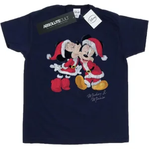 Disney Dames/Dames Mickey en Minnie Kerstkus Katoenen Vriendje T-shirt (Marineblauw)