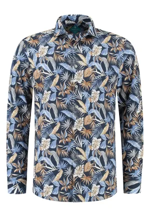 District Indigo Overhemd Creative Mess Print Multicolor 38