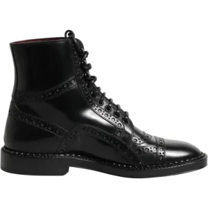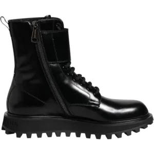 Dolce & Gabbana Zwarte Leren Veterschoenen Tot Halverwege de Kuit