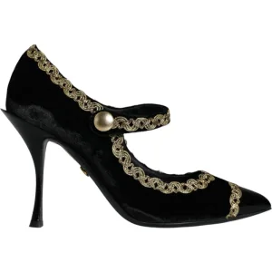 Dolce & Gabbana Zwarte Mary Janes Velvet Gouden Pumps schoenen