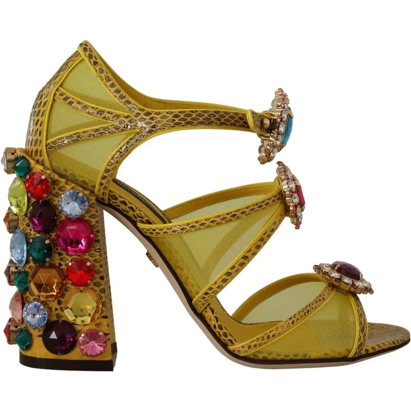 Dolce & Gabbana Gele Leren Kristallen Ayers Sandalen