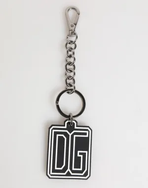 Dolce & Gabbana Zwart Witte DG Rubber Logo Zilveren Mannen Sleutelhanger Sleutelhanger