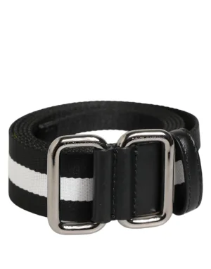 Dolce & Gabbana Zwart Witte Gestreepte Metalen Gesp Herenriem