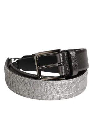 Dolce & Gabbana Zwart Zilver Geweven Textuur Leren Gesp Herenriem