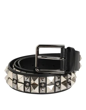 Dolce & Gabbana Zwarte Kalfsleren Riem met Studs en Zilveren Gesp