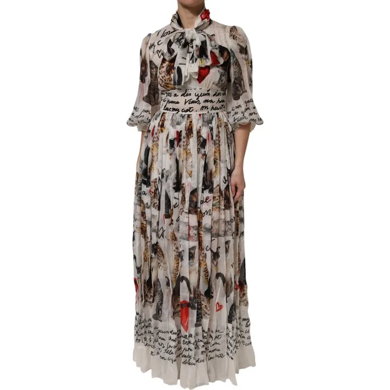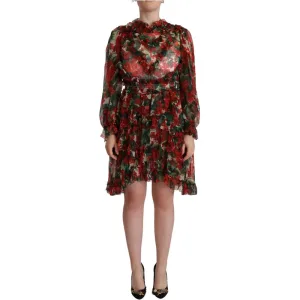 Dolce & Gabbana Dames Multikleur Rode Bloemen Zijden Lange Maxi Jurk