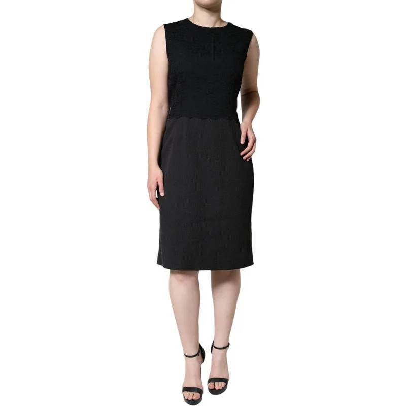 Dolce & Gabbana Dameszwarte Gebreide Wollen Sheath Jurk met Lange Mouwen