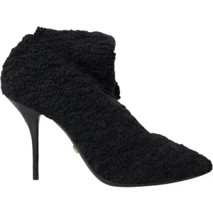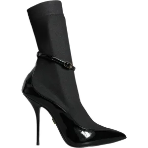 Dolce & Gabbana Zwarte Leren Stiletto Botjes Sokken Schoenen