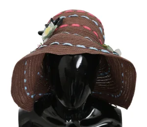 Dolce & Gabbana Bruin Brede Rand Bloemige Floppy Vrouwen Capello Hoed