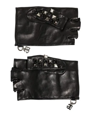 Zwarte Leren Studded Fingerless Handmoffen Mannen Handschoenen