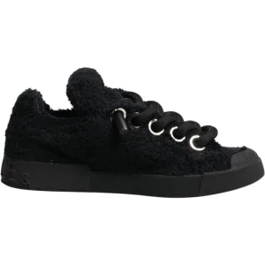 Dolce & Gabbana Zwarte Nep Schapenvacht Lage Sneakerschoenen