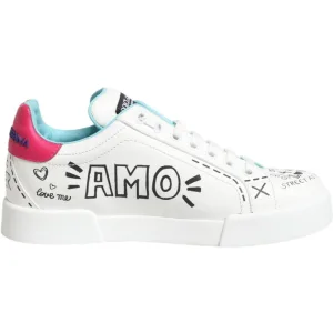 Dolce & Gabbana Witte Leren Graffiti Lage Sneakerschoenen