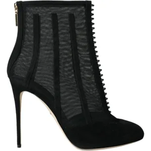 Dolce & Gabbana Zwarte Fijnmazige Stiletto Hak Enkellaarzen Schoenen
