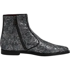 Dolce & Gabbana Donkergrijze Katoenen Geleerde Chelsea Boots Schoenen