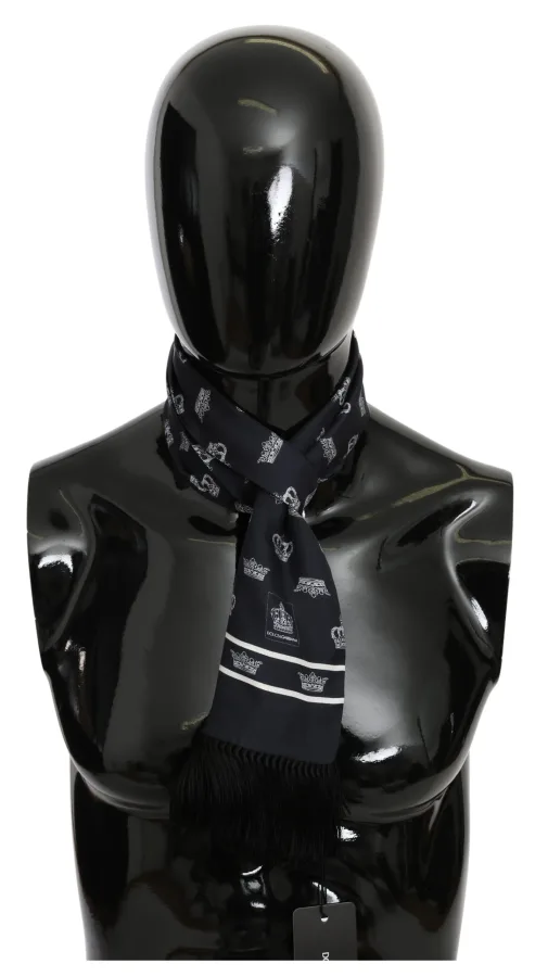 Dolce & Gabbana Blauwe Kroon Wikkel Sjaal 100% Zijde Sjaal