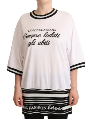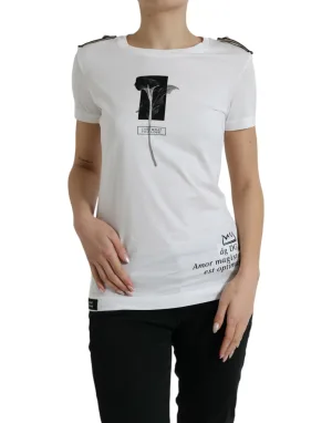 Dolce & Gabbana Dames Witte DG Modeprint Katoenen T-Shirt met Ronde Hals